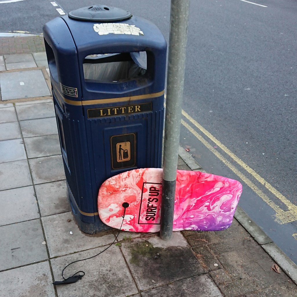 I promise you that the second photo was not set up. The bin was in Tangier Road, Portsmouth, three miles away from the sea.