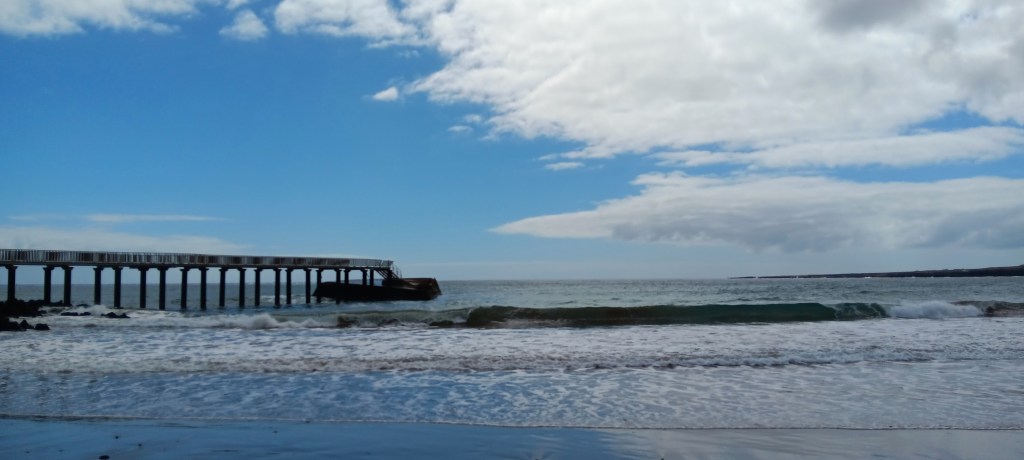As Nomads Land implied, it ain’t safe, You climb over rocks to get into the sea and the waves are breaking yards away. I have never seen waves so big, so close to the shore. It was amazing. We clambered over boulders and made ourselves comfortable and sat there for an hour or so, watching surfers and boogers risking injury to put on a show. And this wasn’t full on. Now I get the Hawaii reference. There was a small inlet and it looked like one side was the footsurfers and one side the Boogie Boarders. We were on the Boogs, most had helmets and all were flying down the walls of water. It was epic.