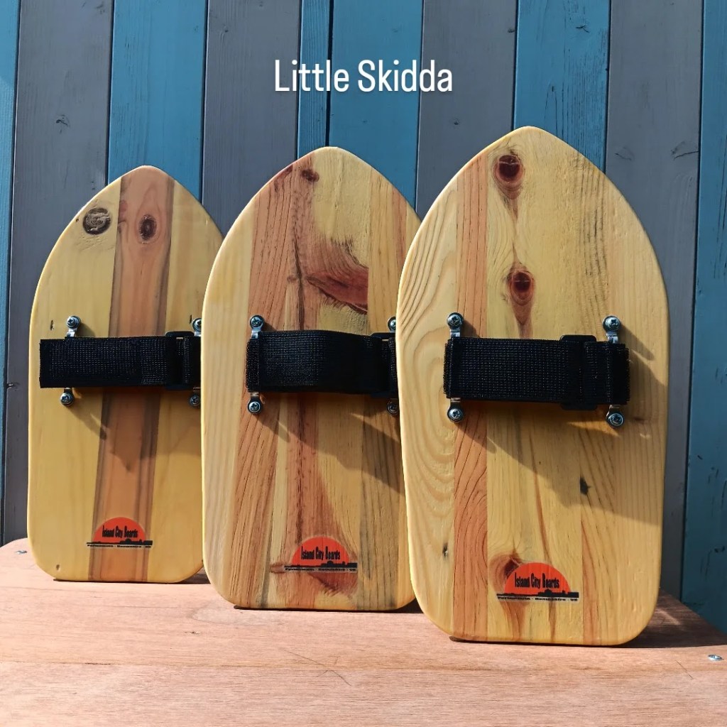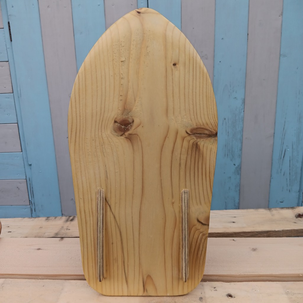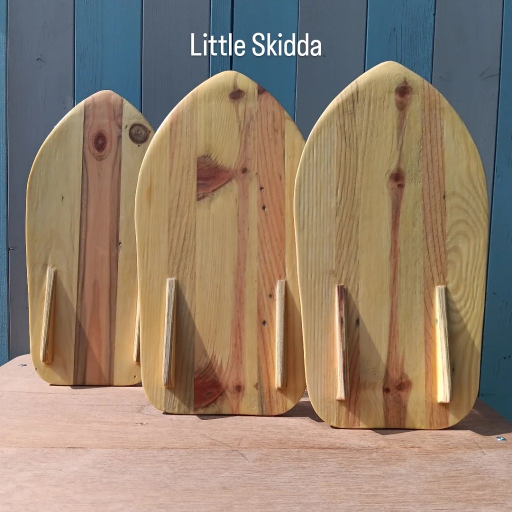 My handplanes came about after a lot of experimenting. I wanted to make something that used rescued wood, including pallet wood, and was different from the others. The first attempts were too thick and, therefore, too clunky. And then, after a happy accident (as Bob Ross used to say) I created a design I liked. My handplanes are slim, have a false rocker and have small fins, similar to those on a Surf Tray. At the time of writing, this is unique. They are made from different pieces of rescued wood, which means no two are the same and they look great. As I’ve said before that pallets are known as Skids, these are called Little Skiddas.